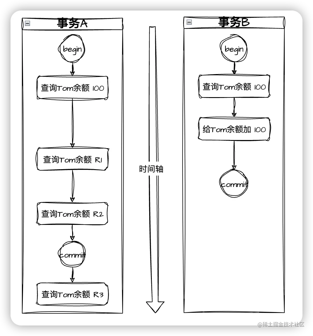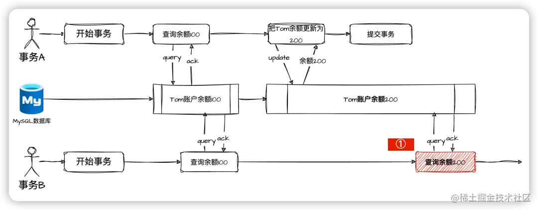 比如有两个事务,事务A和事务B,事务A查询Tom账户余额是100,事务B查询Tom账户余额也是100。