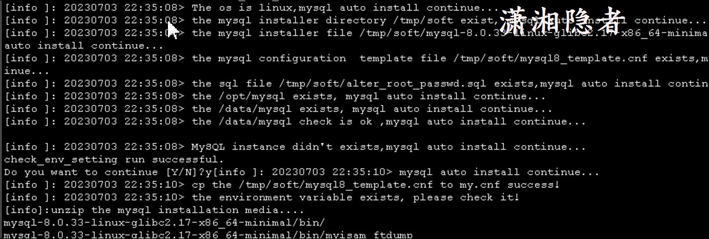 log_info "mysql auto install continue...";;