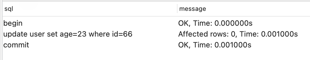 封闭一个事务1,正在事务外更新id=66的用户的年齿: