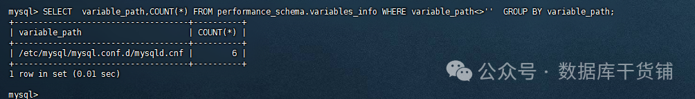 mysql> SELECT variable_path,COUNT(*) FROM performance_schema.variables_info WHERE variable_path<>'' GROUP BY variable_path;