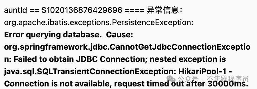于是又赶快望了日记,浮现了年夜质拿没有到MySQL Connection异样。