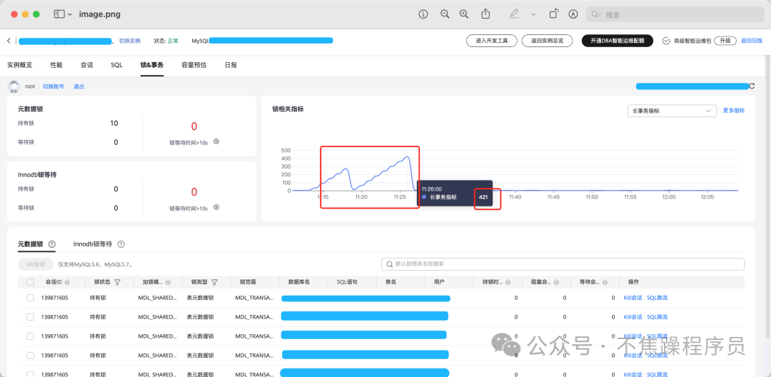 (1) 以上闭于锁的截图,否以望到是元数据锁激发的Connection被耗绝,这甚么是元数据锁: