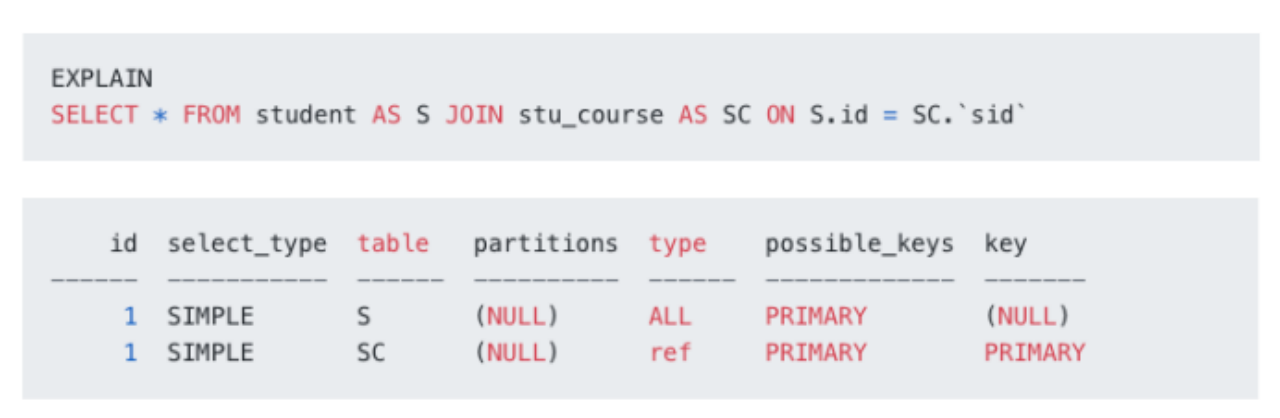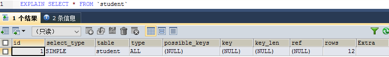 - key :实践利用到的索引,假如为NULL,则不运用索引。