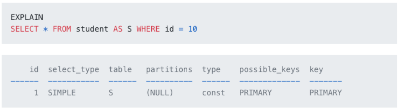 透露表现经由过程索引一次便能找到,const用于比力 primary以及 unique索引。由于只婚配一止数据,以是很快。