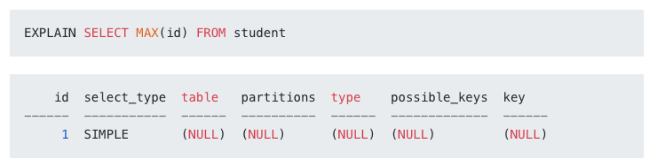 NULL > system > const > eq_ref > ref > ref_or_null > index_merge > range > index > ALLNULL