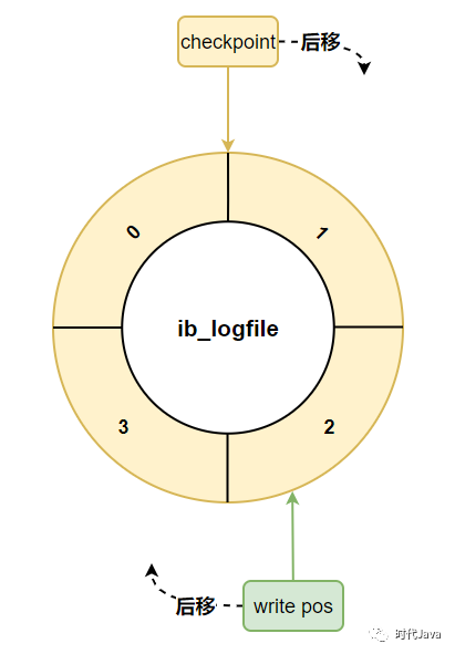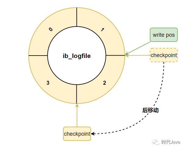 每一次刷盘redo log记载到日记文件组外,write pos地位便会后移更新。