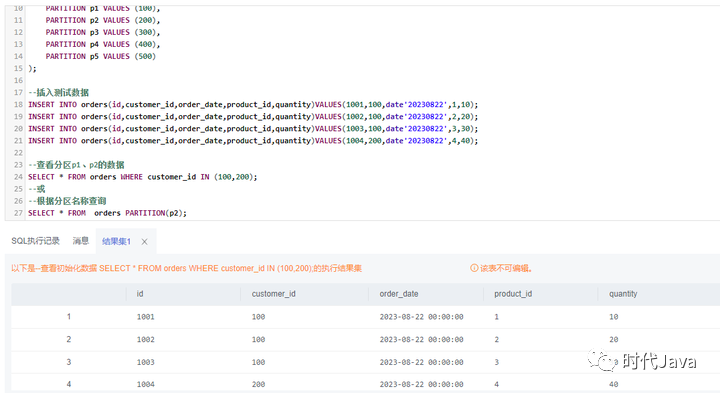 SELECT * FROM orders WHERE customer_id IN (100,两00);1)建立实行表并始初化