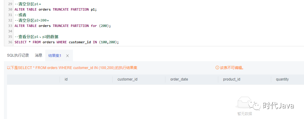 下列事例演示TRUNCATE号令的增除了分区表数据: