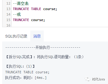 - 必要增除了少量质数据时,异时要供速率快,效率下而且无需打消时,可使用 TRUNCATE。