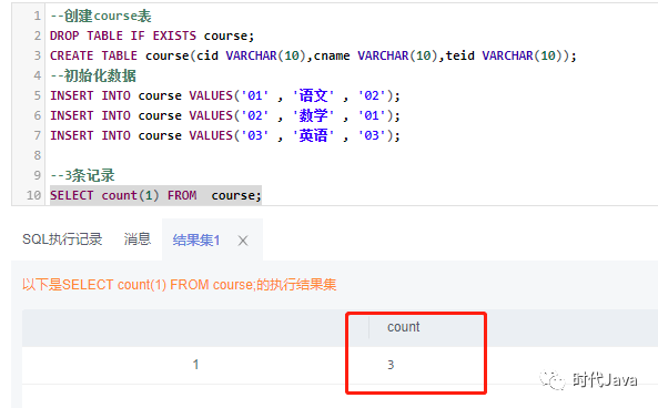 SELECT count(1) FROM course;1)建立施行表并始初化数据