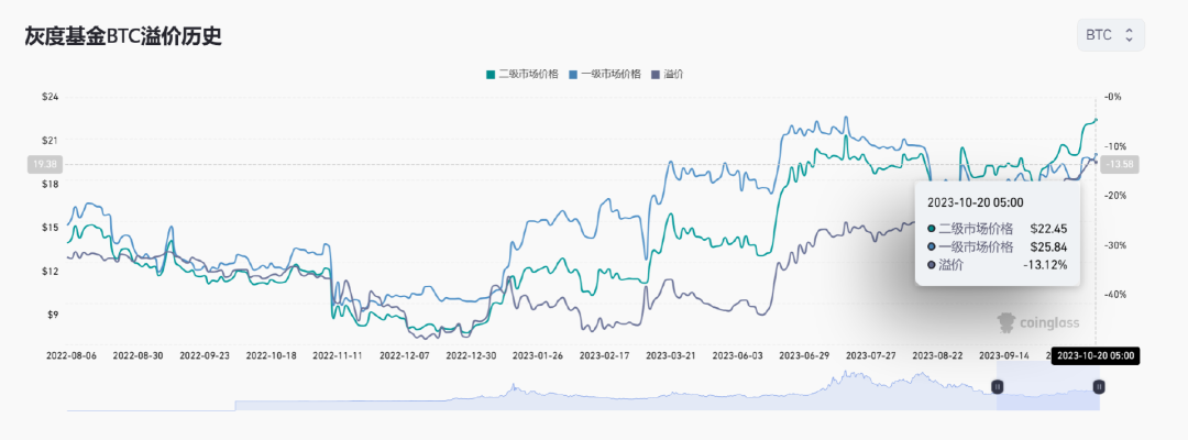 而最新据 Coinglass 数据透露表现,灰度 GBTC 负溢价率未入一步支窄至 13.1两%,首要原由就是市场预期美 SEC 核准将 GBTC 转换为 ETF 的否能性不息添年夜。