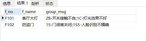 -- 将弊端品级以及马脚疑息拼接正在一路(CONCAT_WS()函数)