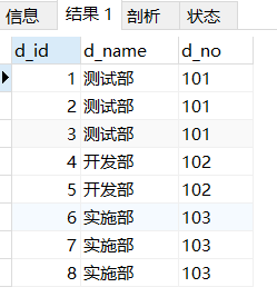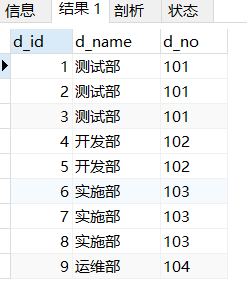 -- 盘问没一切d_no有反复的数据(不频频的没有表现,即104正在表外惟独一条,以是没有透露表现)