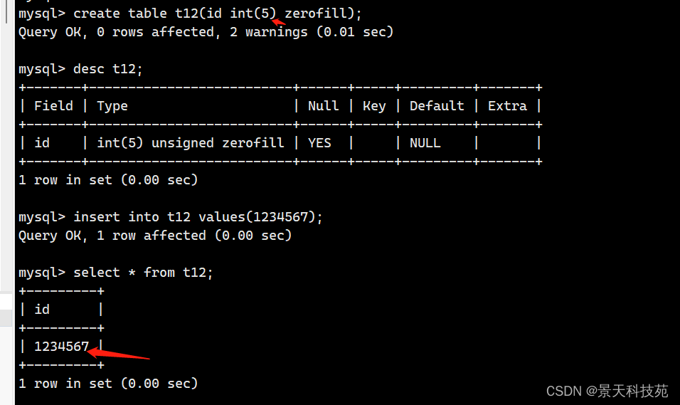 zerofill : 整添补 (合营int利用,不敷5位拿0来添补)