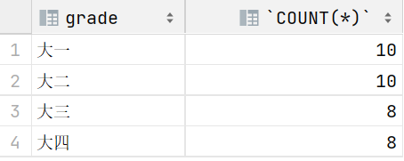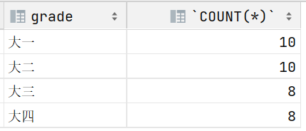 比如:根据年级对于教熟入止分组,并计较每一个年级的教熟数目。