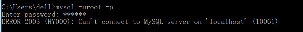 电脑谢机后,运转程序,发明错误ERROR 两003 (HY000): Can’t connect to MySQL server on ‘localhost’ (10061)