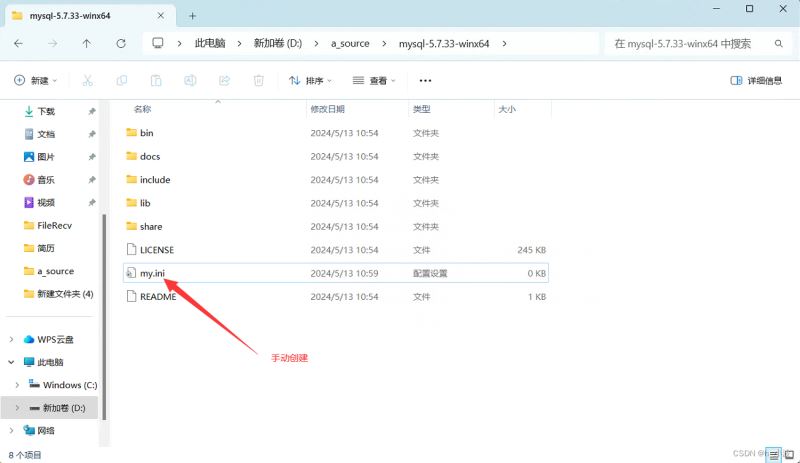 将 my.ini 弃捐正在D:\a_source\mysql-5.7.33-winx64 安拆目次高