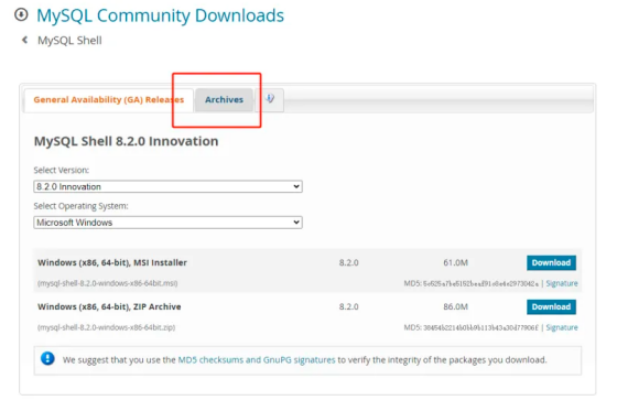 MySQL-shell 高载所在:https://dev.mysql.com/downloads/shell/