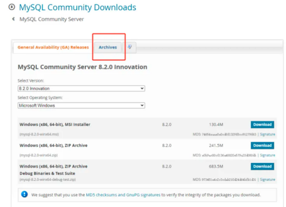 选择当前最新的版原8.0.34,x84,64-bit 。