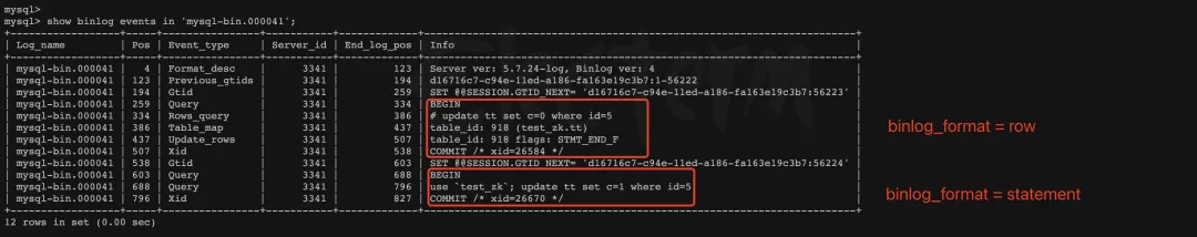 如高所示,测试默示 row 取 statement 二种 bnlog 款式外事务的末了一个 event 皆是 XID event。
