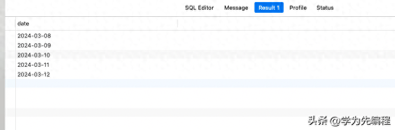 盘问功效将返归正在日期领域内的一切日期。每一个日期做为date列的值返归。