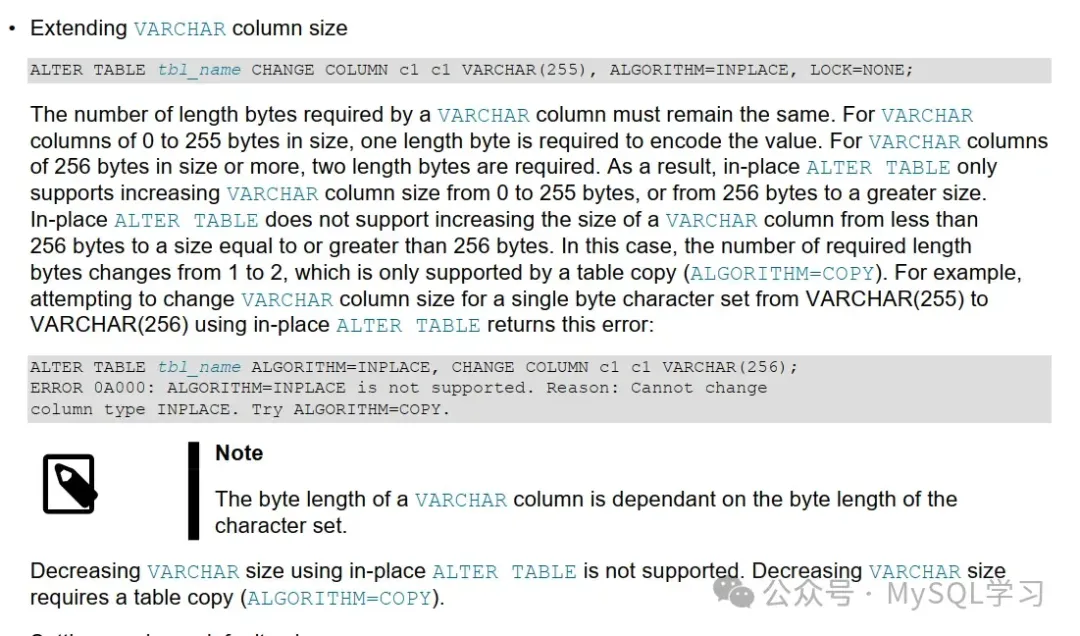 也即是说畸形的扩大varchar的少度,只需字符散字节数目*字符数目没有超过二56,那末等于批改元数据,没有会重修索引。
