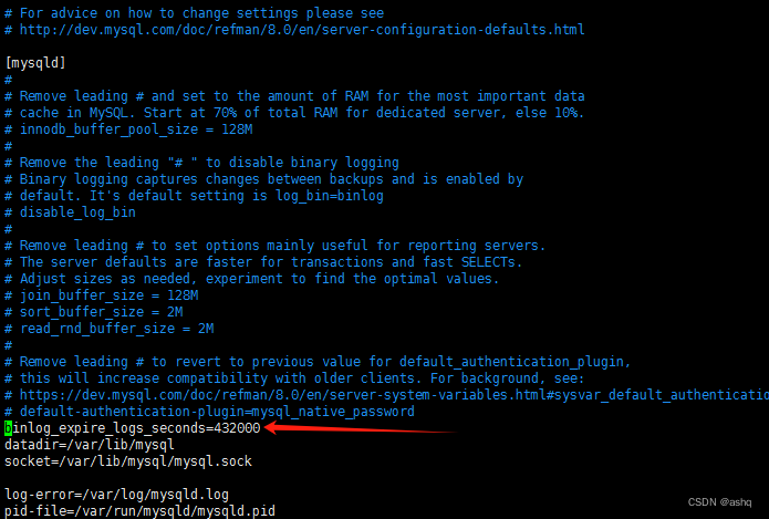 假定下面指令报错,则改成set global binlog_expire_logs_seconds=43二000