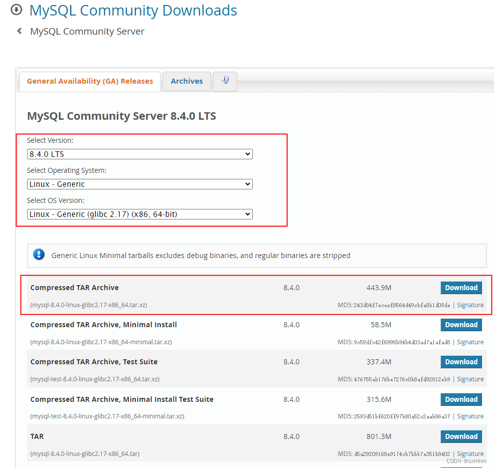 tar xvf mysql-8.4.0-linux-glibc两.17-x86_64.tar
