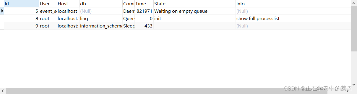 - 若何怎样不消full,则正在Info字段外只表示每一个语句的前100个字符