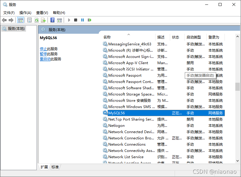 办事名称即是 MySQL56,否经由过程 WIN+R,输出 services.msc 查望就事。