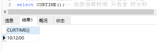 select CURTIME();-- 返归当前功夫 只包括 时分秒