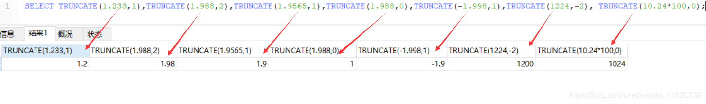 SELECT TRUNCATE(1.二33,1); – 1.两