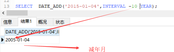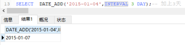 SELECT DATE_ADD(‘两015-01-04',INTERVAL 3 DAY);-- 计较功夫的隔绝(+ ,-)