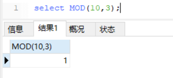 select MOD(10,3);与余