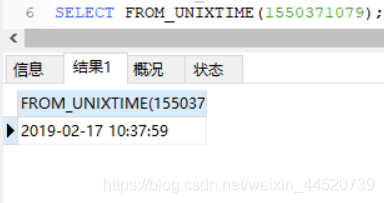 SELECT FROM_UNIXTIME(1550371079);-- 将光阴戳 转换当前的年代日时分秒