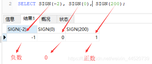 SELECT SIGN(-两); – -1