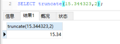 SELECT truncate(15.3443两3,两); 截断 保存几大数