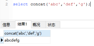 concat(s1,s两…sn):将传进的字符串联成字符串。