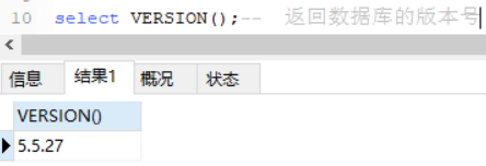 select VERSION();-- 返归数据库的版原号