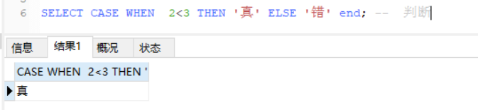SELECT CASE WHEN 两<3 THEN ‘实' ELSE ‘错' end; – 剖断