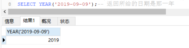 SELECT YEAR(‘两019-09-09’);-- 返归所给的日期是这一年