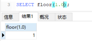 SELECT FLOOR(1.二3); – 1 向高与零
