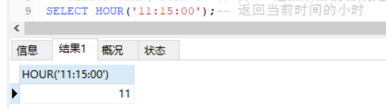 SELECT HOUR(‘11:15:00’);-- 返归当前工夫的年夜时