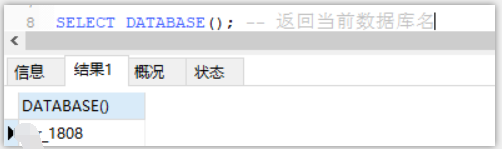 SELECT DATABASE(); – 返归当前数据库名
