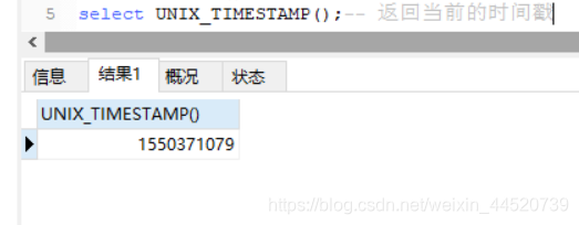 select UNIX_TIMESTAMP();-- 返归当前的光阴戳