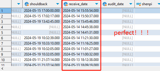 排序时咱们用 receive_date(一个统计的功夫,内中有较多的null) 排序,那末正在倒序时由于 receive_date 的值 有null的 以是会排正在最前里,有值的排正在后背。