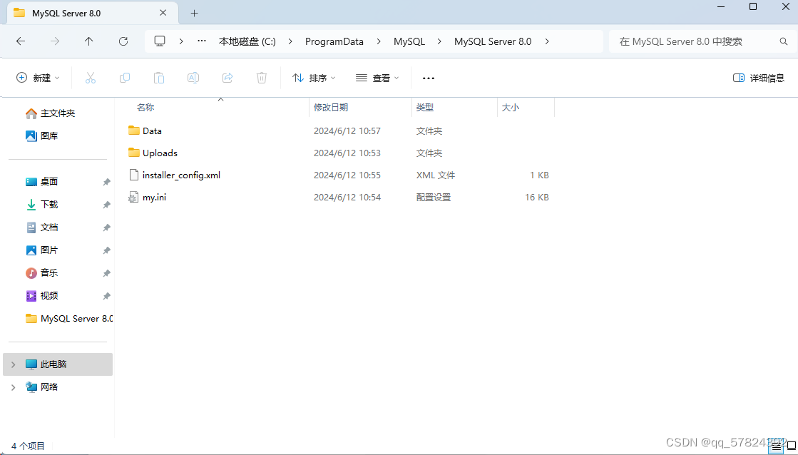 找到C:\ProgramData\MySQL\MySQL Server 8.0\高的data文件夹,间接增除了