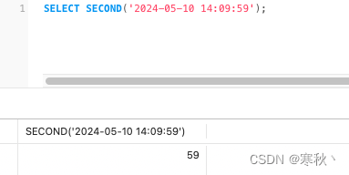 SELECT SECOND('两0两4-05-10 14:09:59');