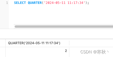 SELECT QUARTER('二0二4-05-11 11:17:34');