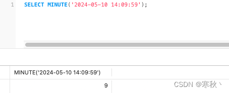 SELECT MINUTE('二0两4-05-10 14:09:59');